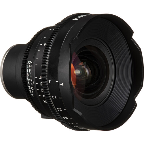 Xeen 16mm T2.6 Lens with Sony E Mount is built specifically for use as a cinema lens. It features an internal focus design so that the lens does not change size while focusing, this minimizes the appearance of breathing when changing focus. Each lens in the set is multi-coated for good contrast, glare prevention, and color match to a factory standard, allowing you to assemble a set over time with minimal color shift. This 16mm lens provides what is considered a very wide angle of view on full-frame cameras, and a correspondingly tighter angle of view on smaller-format cameras.